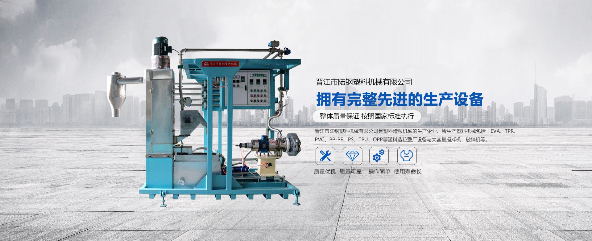 晉江市陸鋼塑料機(jī)械有限公司是塑料造粒機(jī)械的生產(chǎn)企業(yè)。所生產(chǎn)塑料機(jī)械包括:EVA、TPR、PVC、PP-PE、PS、TPU、OPP等塑料造粒整廠設(shè)備與大容量攪拌機(jī)、破碎機(jī)等。